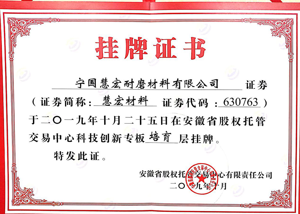 全面推行ISO9001;2000版質(zhì)量管理體系標(biāo)準(zhǔn),秉承“科學(xué)管理、精心制造、優(yōu)質(zhì)服務(wù)、追求卓越”的質(zhì)量方針,不斷打造高端耐磨材料產(chǎn)品。